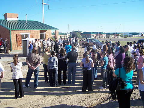 Luego de un brindis con todos los presentes, se dirigieron a la Escuela local para realizar la presentación del Proyecto: “Desarrollo de circuitos turísticos integrados (Casa de Piedra-Lihué Calel-Puelches)”, realizado por la UNLPam, en convenio con el Ministerio de la Producción.