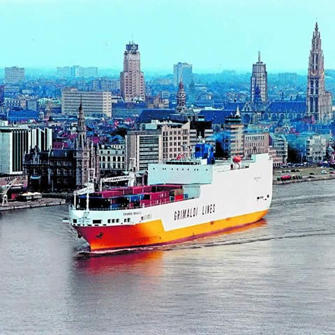 El carguero de «Grimaldi» tiene una capacidad de carga de 56.700 toneladas. Partió del puerto de «Le Havre» en Normandía, Francia y trae 550 vehículos europeos de competencia, organización y prensa.