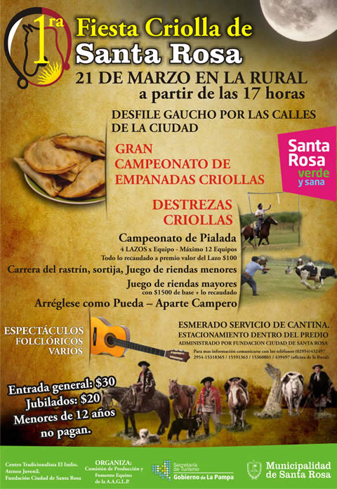 Este sábado 21 marzo de 2015 dará comienzo a las 17 hs la “1ª Fiesta Criolla de Santa Rosa” con desfile gaucho por calles de la ciudad.